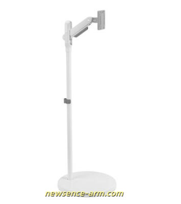 Consider a telemedicine consultation room where the screen must face both the remote participant and the local caregiver. The freestanding base permits the assembly to rotate fully so the visual interface addresses either person without awkward repositioning. Independent reach adjustment brings the panel forward for clear conversation then retracts it to maintain distance when notes are taken. The upright structure occupies minimal ground area, leaving space for the patient chair and equipment trolley to remain in place. Cleaning becomes straightforward because the smooth surfaces and open base allow thorough wiping without disassembly.